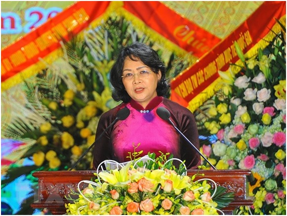 Phó Chủ tịch nước Đặng Thị Ngọc Thịnh phát biểu tại buổi lễ. (Ảnh: Minh Đức/TTXVN)