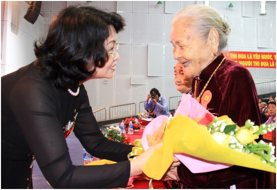 Phó chủ tịch nước Đặng Thị Ngọc Thịnh tặng hoa và quà cho các Bà Mẹ Việt Nam Anh hùng