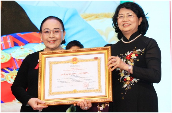 Phó chủ tịch nước Đặng Thị Ngọc Thịnh trao Huân chương Lao động hạng Nhất cho bà Trần Cẩm Nhung, Phó chủ tịch HĐQT Công ty cổ phần Golf Long Thành