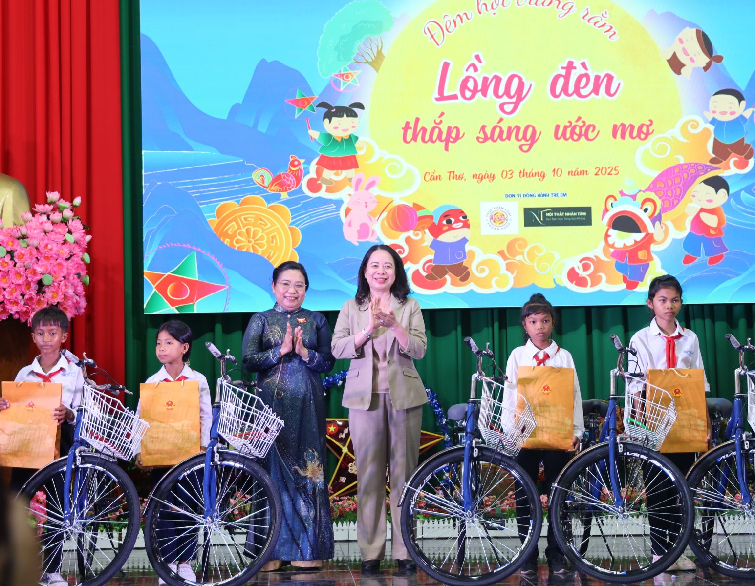 Tại chương trình, Phó Chủ tịch nước Võ Thị Ánh Xuân cùng Đoàn công tác, lãnh đạo thành phố Cần Thơ trao 30 suất học bổng, 30 chiếc xe đạp cho các học sinh có hoàn cảnh khó khăn.