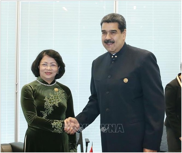 Nhân dịp tham dự Hội nghị Cấp cao lần thứ 18 Phong trào Không liên kết tại Cộng hòa Azerbaijan, sáng 26/10/2019 (theo giờ địa phương), tại Thủ đô Baku, Phó Chủ tịch nước Đặng Thị Ngọc Thịnh hội kiến Tổng thống Venezuela Nicolás Maduro.