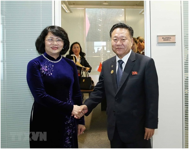 Khẳng định Đảng, Nhà nước và nhân dân Việt Nam luôn coi trọng quan hệ hữu nghị truyền thống với Triều Tiên, Phó Chủ tịch nước đánh giá cao thành công của chuyến thăm chính thức Việt Nam của Chủ tịch Triều Tiên Kim Jong-un tháng Ba vừa qua và cho rằng hai nước cần thúc đẩy hơn nữa quan hệ hợp tác phù hợp với các quy định của luật pháp quốc tế và các nghị quyết liên quan của Hội đồng Bảo an Liên hợp quốc.