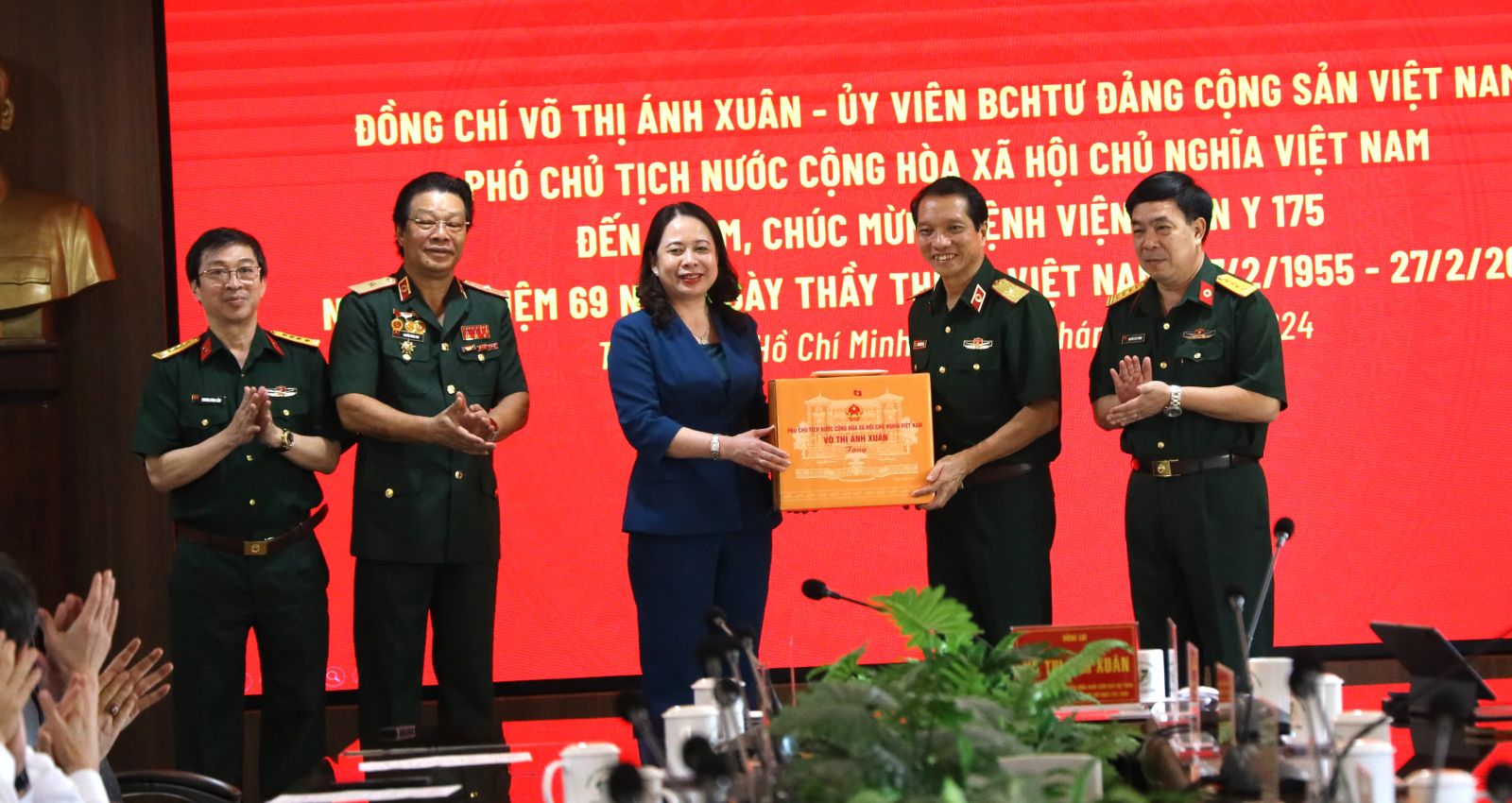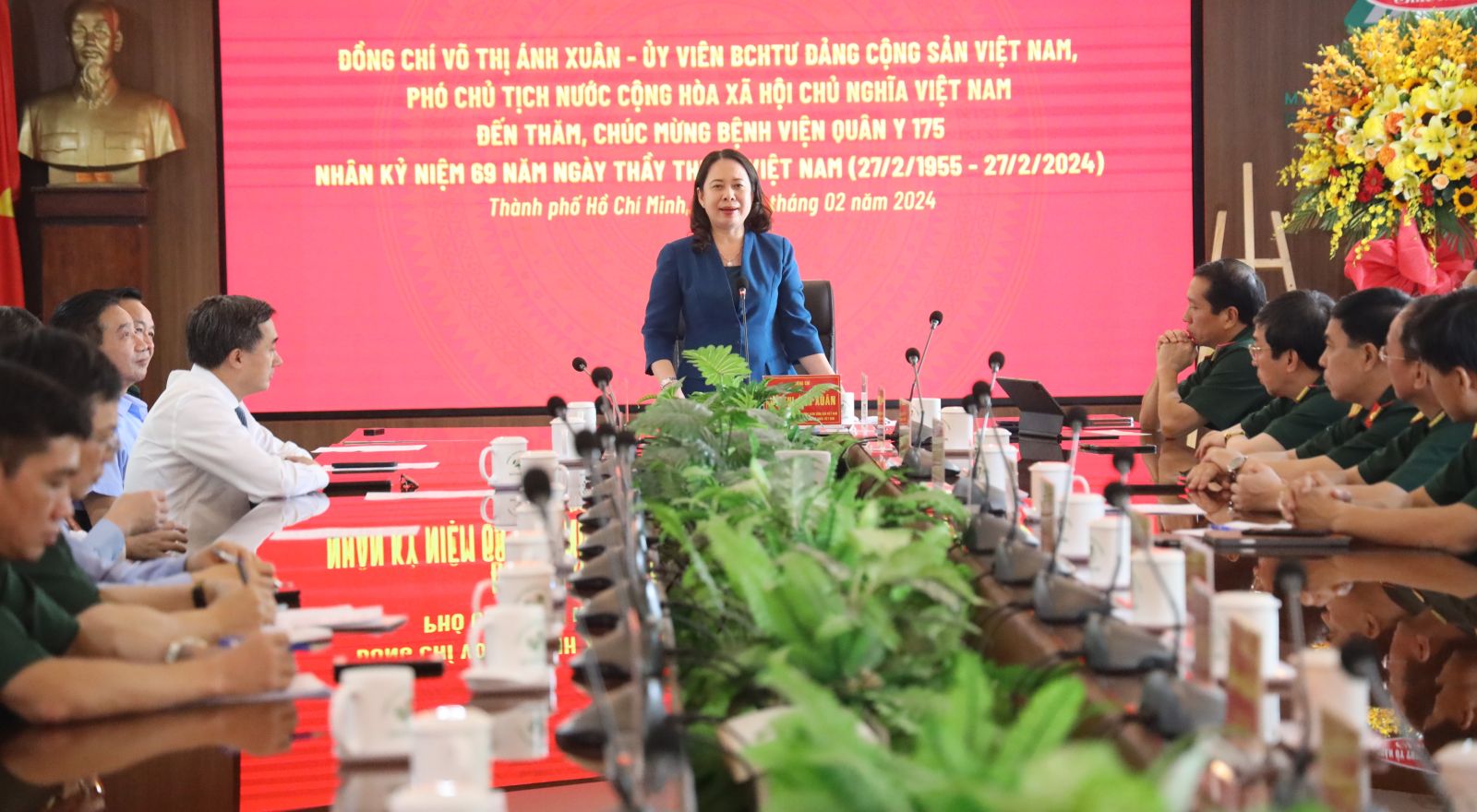 Thiếu tướng, Tiến sĩ, bác sĩ Trần Quốc Việt, Giám đốc Bệnh viện Quân y 175 báo cáo với Phó Chủ tịch nước, Bệnh viện Quân y 175 là bệnh viện đa khoa chiến lược tuyến cuối phía Nam của Bộ Quốc phòng, thực hiện nhiệm vụ khám, chữa bệnh, cấp cứu, điều trị cho người dân; tham gia chăm sóc, bảo vệ sức khỏe cán bộ cao cấp của Đảng, Nhà nước, Quân đội Hoàng gia Campuchia. Bệnh viện nghiên cứu ứng dụng, phát triển khoa học về y học; huấn luyện bệnh viện dã chiến cấp 2 tham gia lực lượng gìn giữ hòa bình Liên hợp quốc; tổ chức lực lượng quân y tại Trường Sa, sẵn sàng cấp cứu biển đảo; phòng, chống thảm họa thiên tai, lũ lụt…