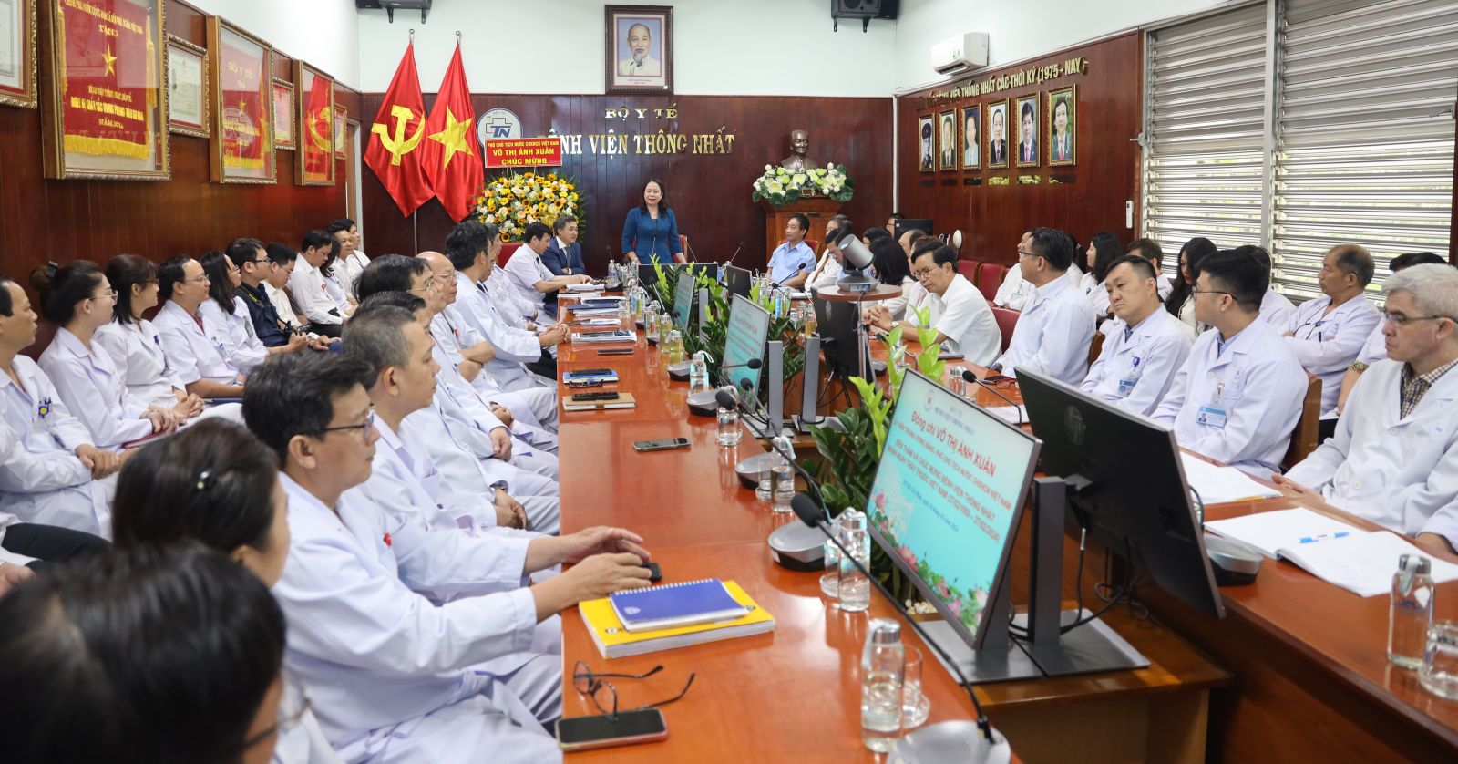 Trước đó, Phó Chủ tịch nước Võ Thị Ánh Xuân thăm, chúc mừng tập thể lãnh đạo, y bác sĩ Bệnh viện Thống Nhất TP Hồ Chí Minh. Đây là bệnh viện đa khoa hạng một trực thuộc Bộ Y tế với nhiệm vụ chính là khám, chữa bệnh cho cán bộ trung cao cấp của Đảng, Nhà nước, lực lượng vũ trang, nhân dân các tỉnh phía Nam.