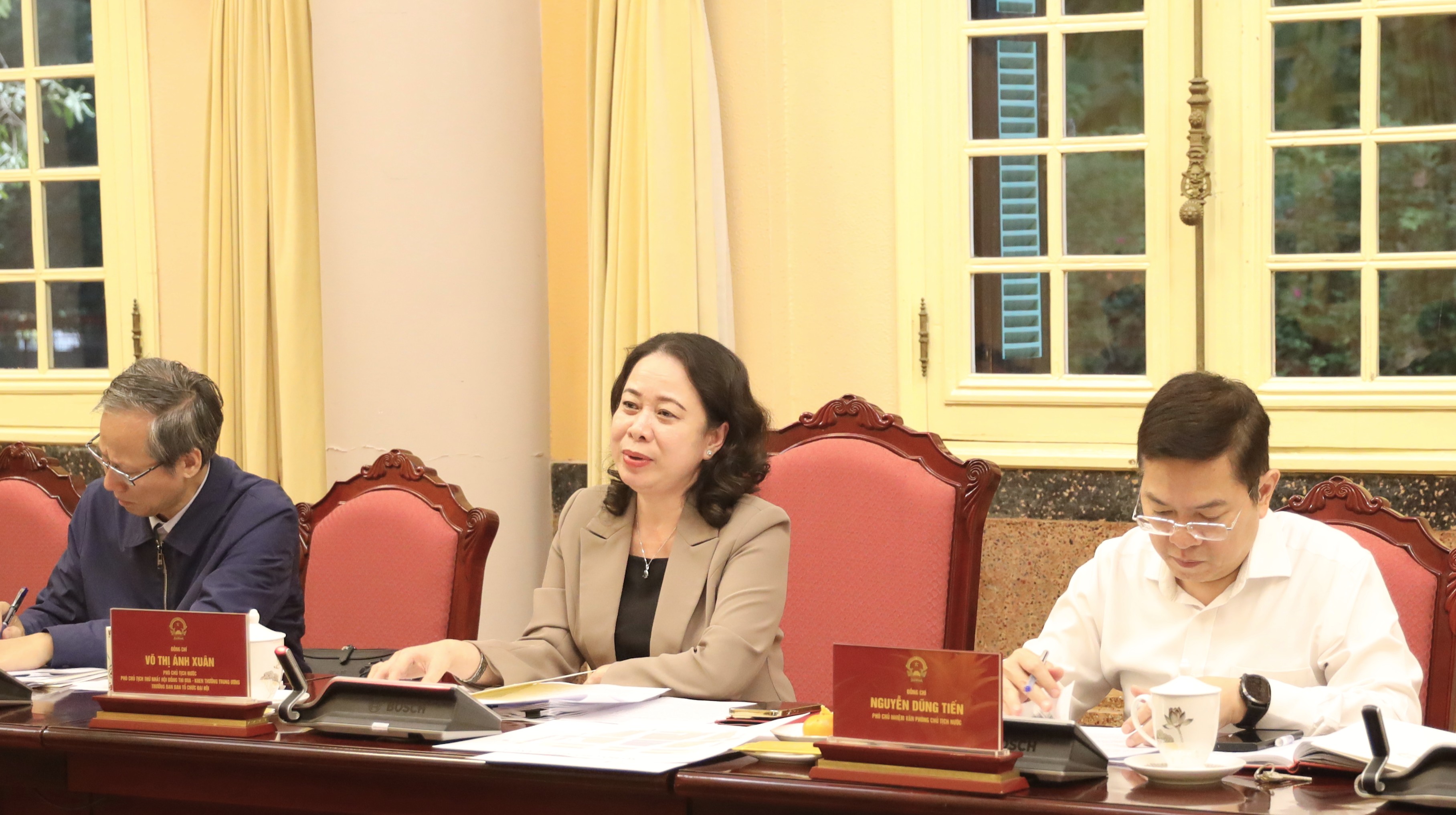 Phó Chủ tịch nước Võ Thị Ánh Xuân phát biểu kết luận buổi làm việc. Ảnh: VPCTN