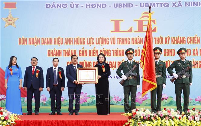 Phó Chủ tịch nước Đặng Thị Ngọc Thịnh trao Danh hiệu Anh hùng lực lượng vũ trang nhân dân thời kỳ kháng chiến chống thực dân Pháp cho xã Ninh Hiệp.