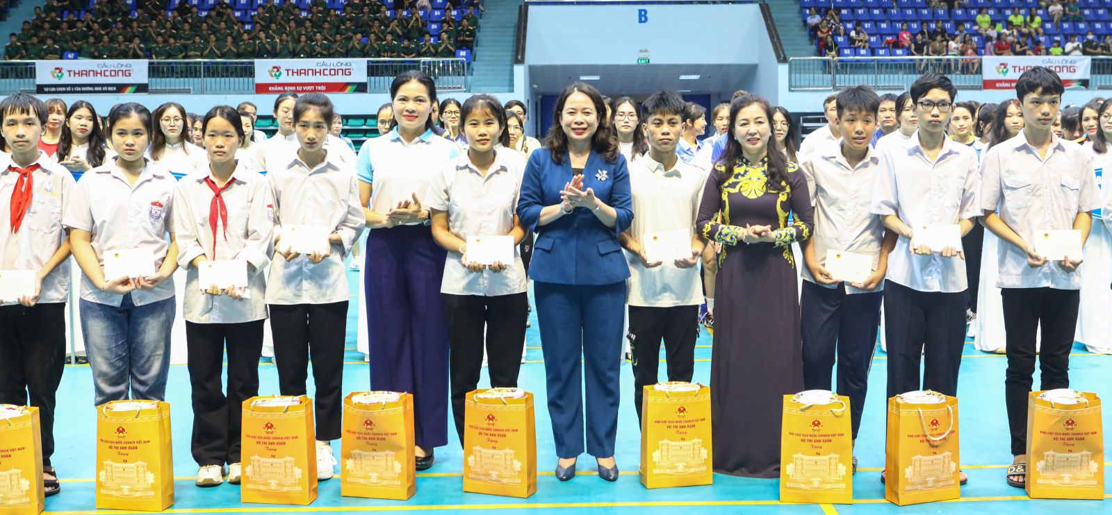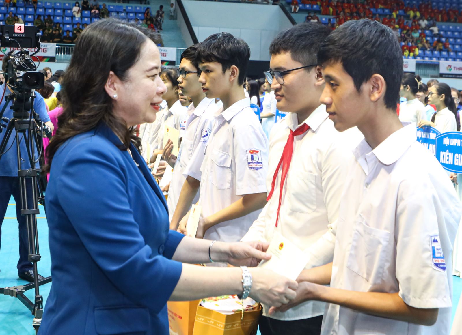 Nhân dịp này, Phó Chủ tịch nước Võ Thị Ánh Xuân đã trao 50 suất học bổng cho học sinh nghèo vượt khó học giỏi của tỉnh Bắc Giang và trao cờ lưu niệm cho các đoàn tham dự Hội thi.