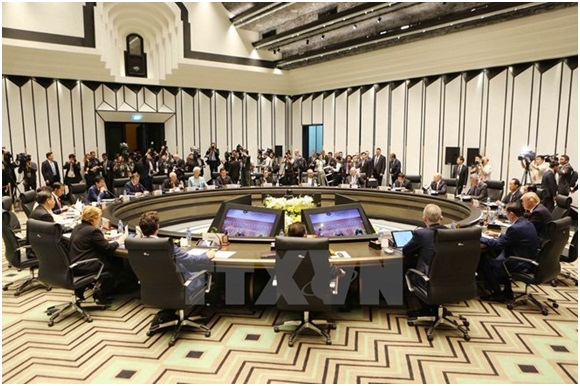 Chủ tịch nước Trần Đại Quang, Chủ tịch Hội nghị Cấp cao APEC chủ trì phiên họp kín trong khuôn khổ Hội nghị các Nhà lãnh đạo Kinh tế APEC lần thứ 25. (Ảnh: TTXVN)