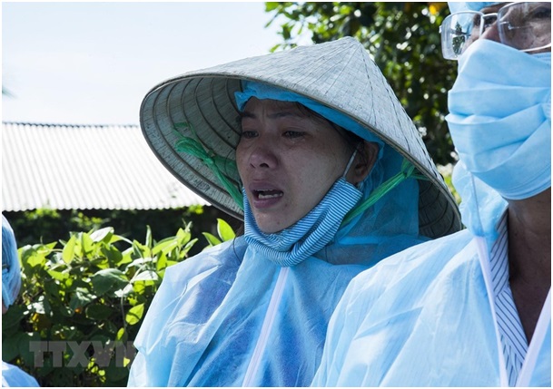 Nỗi buồn của chị Vũ Thị Hồng Gấm, xã Tân Hiệp A, huyện Tân Hiệp, có đàn lợn bị tiêu hủy do dịch tả lợn châu Phi. (Ảnh: Hồng Đạt/TTXVN)