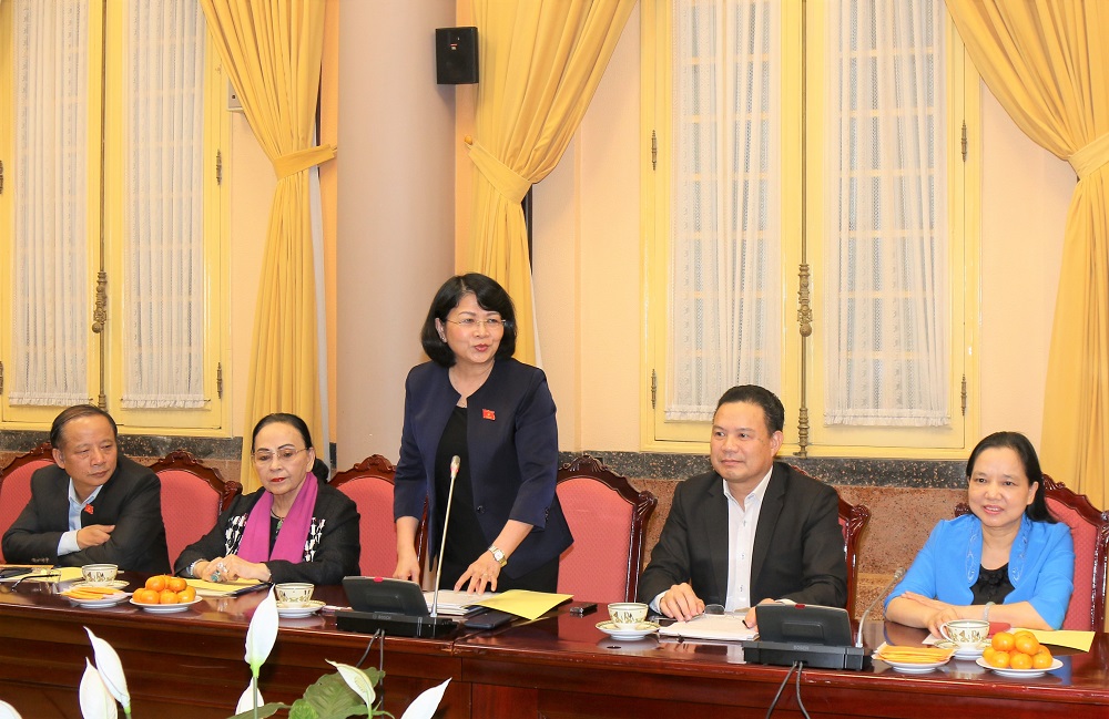 Phó Chủ tịch nước, Chủ tịch Hội đồng bảo trợ Quỹ Bảo trợ trẻ em Việt Nam Đặng Thị Ngọc Thịnh phát biểu kết luận phiên họp. (Ảnh: VPCTN/Công Gôn)