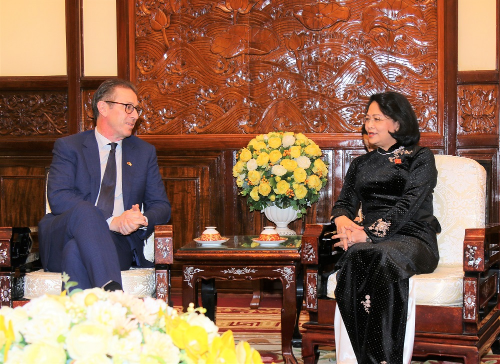 Phó Chủ tịch nước Đặng Thị Ngọc Thịnh tiếp Tổng Giám đốc điều hành Tập đoàn Mainstream Renewable Power Andy Kinsella. (Ảnh: VPCTN/Công Gôn)
