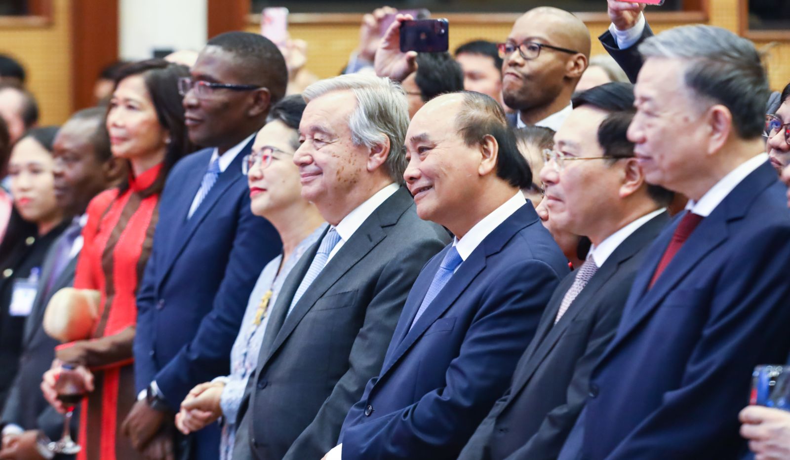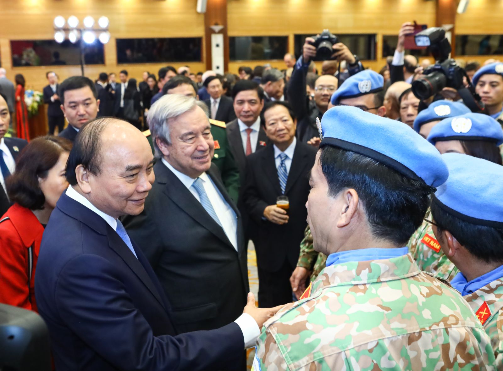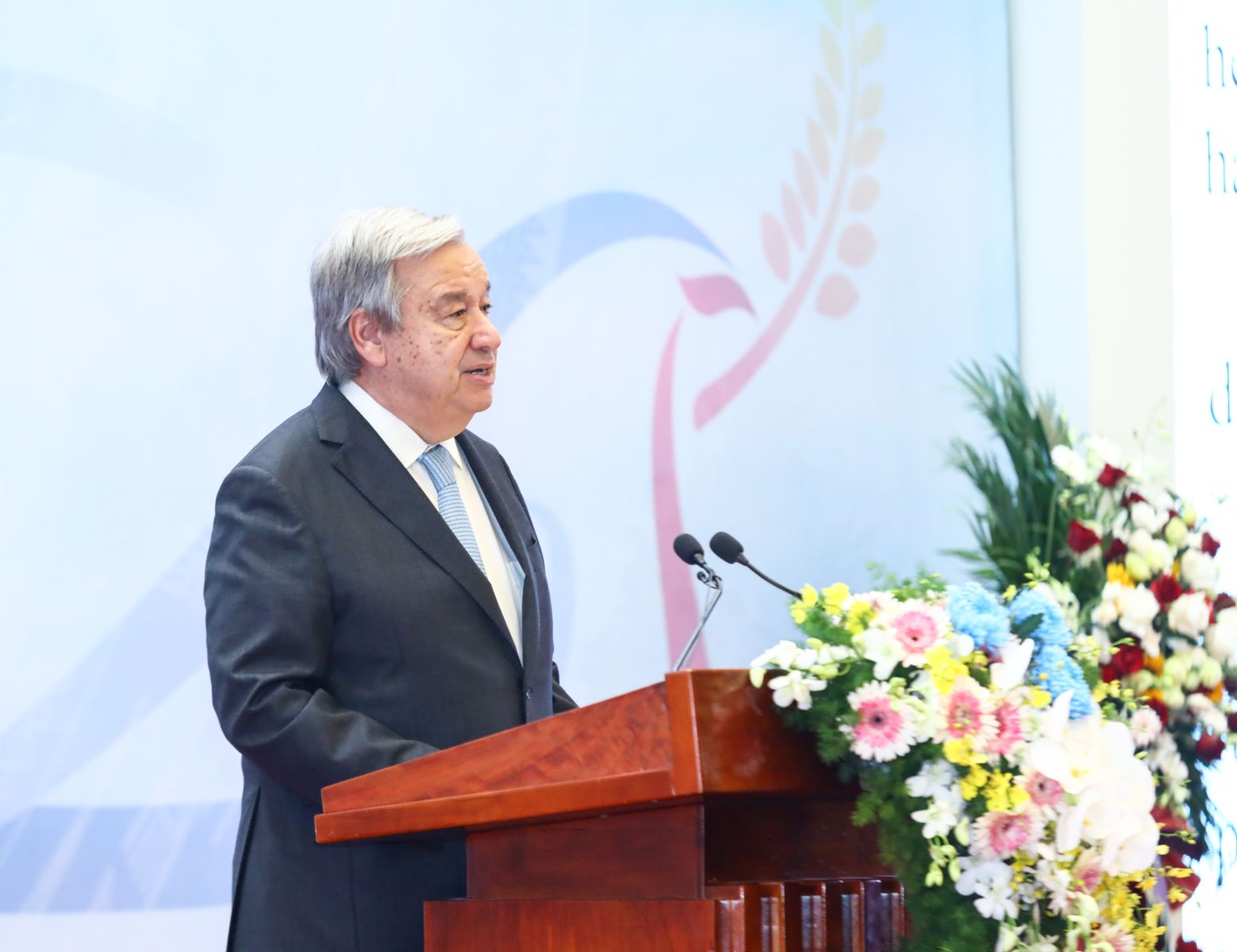 Trong bài phát biểu, Tổng thư ký Liên hợp quốc António Guterres bày tỏ ấn tượng về hành trình phát triển của Việt Nam. Từ chỗ là quốc gia nhận viện trợ lương thực, một đất nước bị chiến tranh tàn phá, bị cô lập và nạn đói chực chờ, nay Việt Nam đang gửi những người lính gìn giữ hòa bình đến giúp đỡ người dân ở một số nơi trên thế giới.