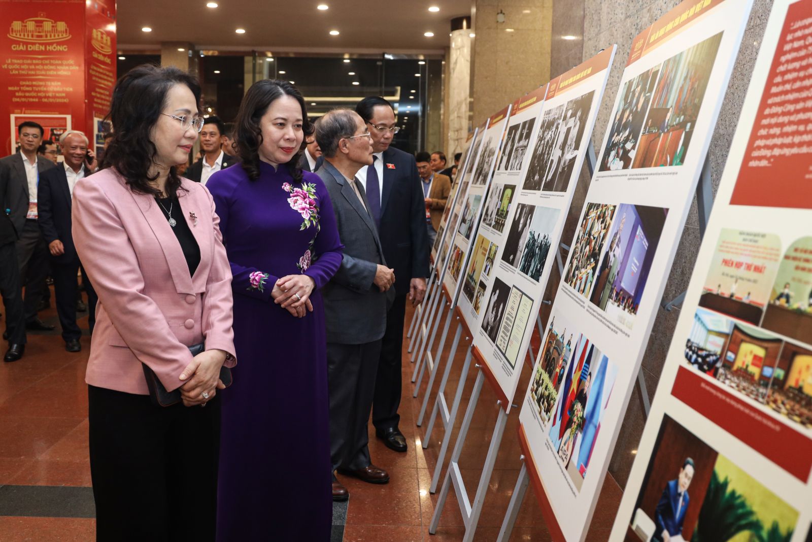 Đại biểu tham quan trưng bày ảnh về Quốc hội và Hội đồng nhân dân qua các thời kỳ. Ảnh: VPCTN