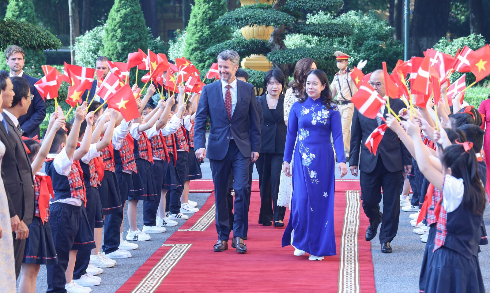 Phó Chủ tịch nước Võ Thị Ánh Xuân chủ trì lễ đón Thái tử kế vị Đan Mạch Frederik và Công nương. Ảnh: VPCTN