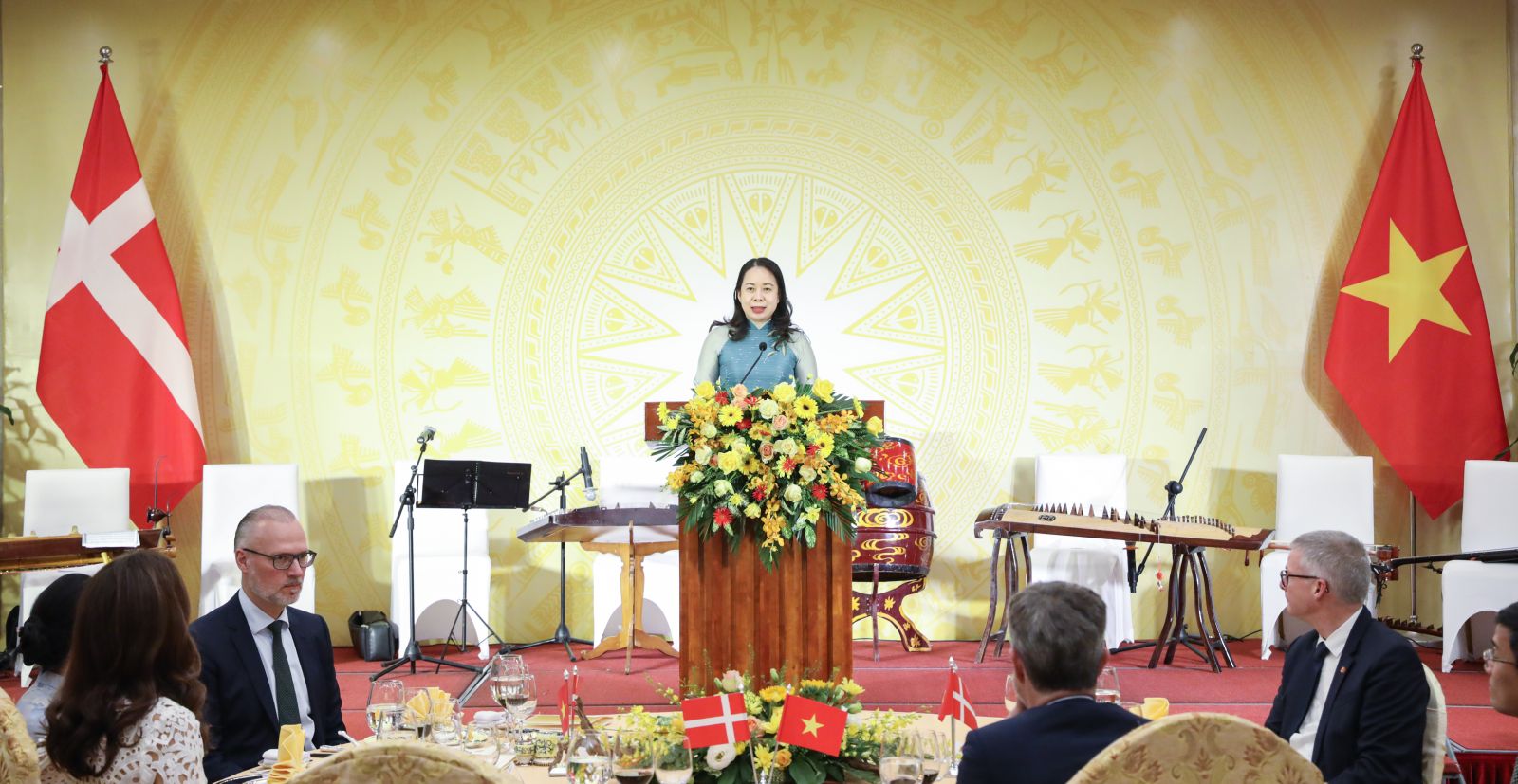 Sau buổi tiếp, Phó Chủ tịch nước Võ Thị Ánh Xuân chủ trì chiêu đãi chào mừng Thái tử kế vị Đan mạch Frederik và Công nương Phu nhân Mary Elizabeth