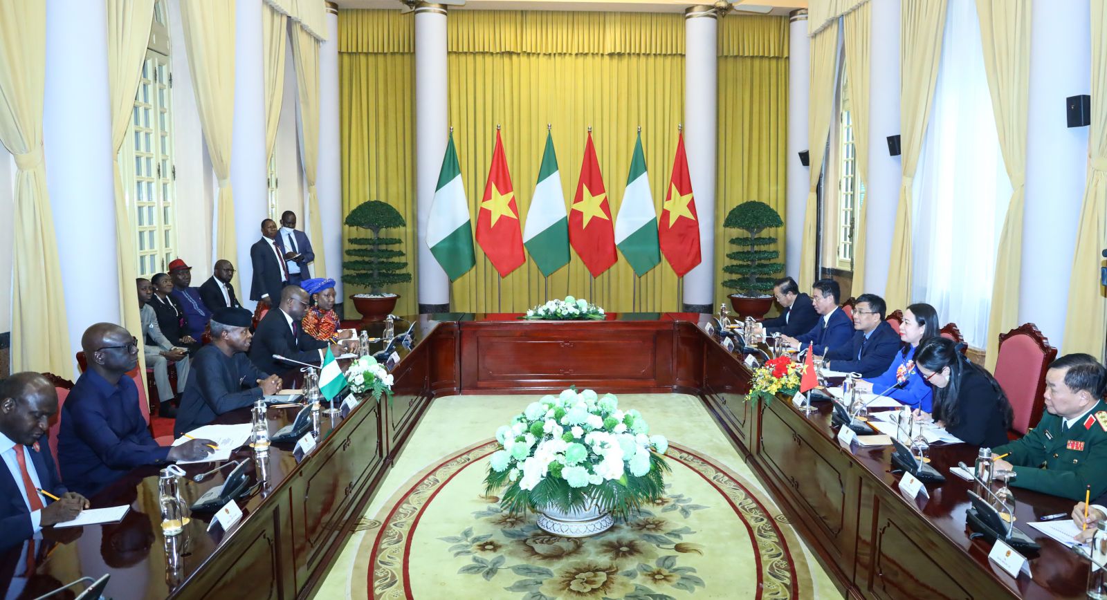 Thay mặt Nhà nước và nhân dân Việt Nam, Phó Chủ tịch nước Võ Thị Ánh Xuân nhiệt liệt chào mừng Phó Tổng thống Yemi Osinbajo sang thăm chính thức Việt Nam sau cuộc điện đàm giữa hai bên tháng 9/2021, đánh dấu chuyến thăm cấp cao nhất của Nigeria tới Việt Nam kể từ năm 2005. Phó Chủ tịch nước Võ Thị Ánh Xuân tin tưởng chuyến thăm sẽ góp phần củng cố mối quan hệ hợp tác tốt đẹp giữa hai nước.