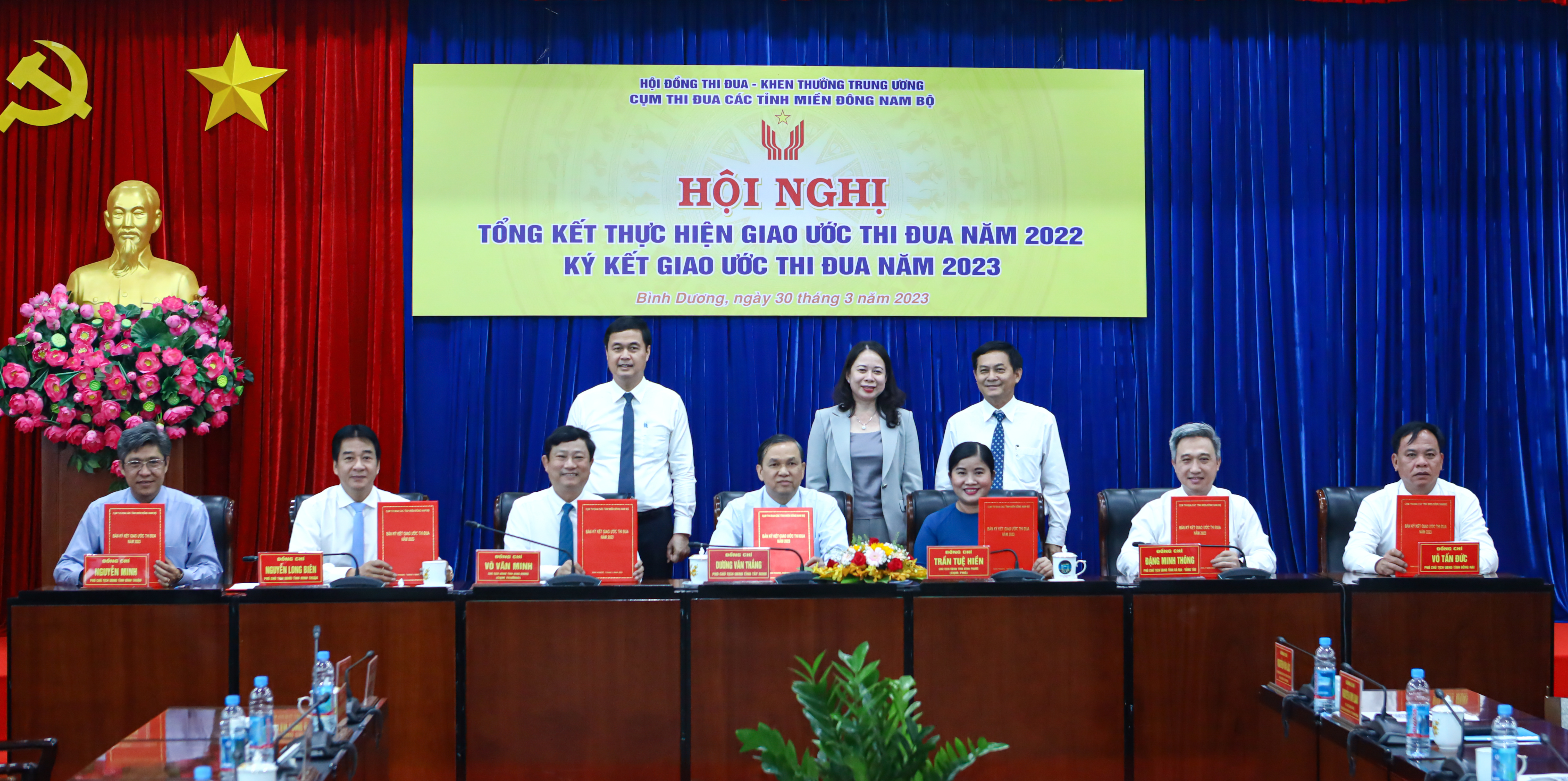 Theo báo cáo, năm 2022, các tỉnh trong Cụm đều thực hiện tốt Chỉ thị số 34-CT/TW của Bộ Chính trị về “Tiếp tục đổi mới công tác thi đua, khen thưởng”; thực hiện công tác thi đua, khen thưởng bảo đảm đúng quy định, kịp thời, công khai, minh bạch, tạo hiệu ứng tích cực, có sức lan tỏa. Các tỉnh cũng triển khai thực hiện tốt Nghị quyết số 24-NQ/TW của Bộ Chính trị về phát triển kinh tế - xã hội và bảo đảm quốc phòng - an ninh vùng Đông Nam Bộ đến năm 2030, tầm nhìn đến năm 2045; Nghị quyết số 01/NQ-CP của Chính phủ về nhiệm vụ, giải pháp chủ yếu thực hiện Kế hoạch phát triển kinh tế - xã hội, dự toán ngân sách Nhà nước và cải thiện môi trường kinh doanh, nâng cao năng lực cạnh tranh quốc gia năm 2023, với phương châm “đoàn kết, kỷ cương, bản lĩnh, linh hoạt, đổi mới sáng tạo, kịp thời, hiệu quả”.