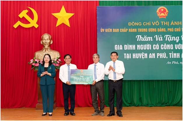 Dịp này, Phó Chủ tịch nước Võ Thị Ánh Xuân đã trao tặng 10 căn nhà Đại đoàn kết cho huyện An Phú và 50 phần quà cho các gia đình người có công với cách mạng tiêu biểu trên địa bàn huyện.