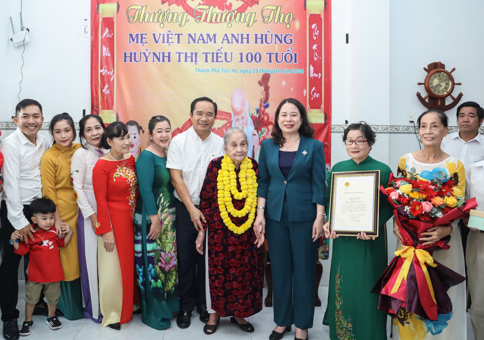 * Cùng ngày, Phó Chủ tịch nước Võ Thị Ánh Xuân cùng Đoàn công tác đến thăm, tặng quà Mẹ Việt Nam Anh hùng Huỳnh Thị Tiếu có chồng và con hy sinh trong kháng chiến tại Lễ thượng thượng thọ Mẹ tròn 100 tuổi.