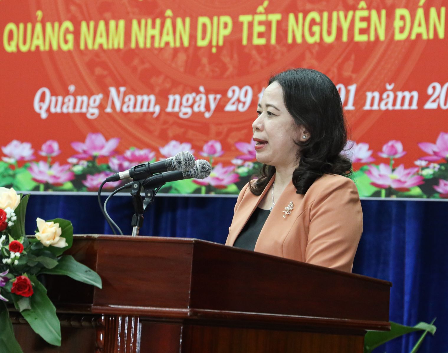 Phát biểu tại buổi thăm và tặng quà nhân dịp Tết Nguyên đán 2024, Phó Chủ tịch nước Võ Thị Ánh Xuân thông báo một số kết quả đạt được của nước ta trong năm 2023; đồng thời ghi nhận, biểu dương những thành tựu đạt được của tỉnh Quảng Nam trong thời gian qua và nêu lên một số tồn tại, hạn chế cần phải khắc phục trong thời gian tới.