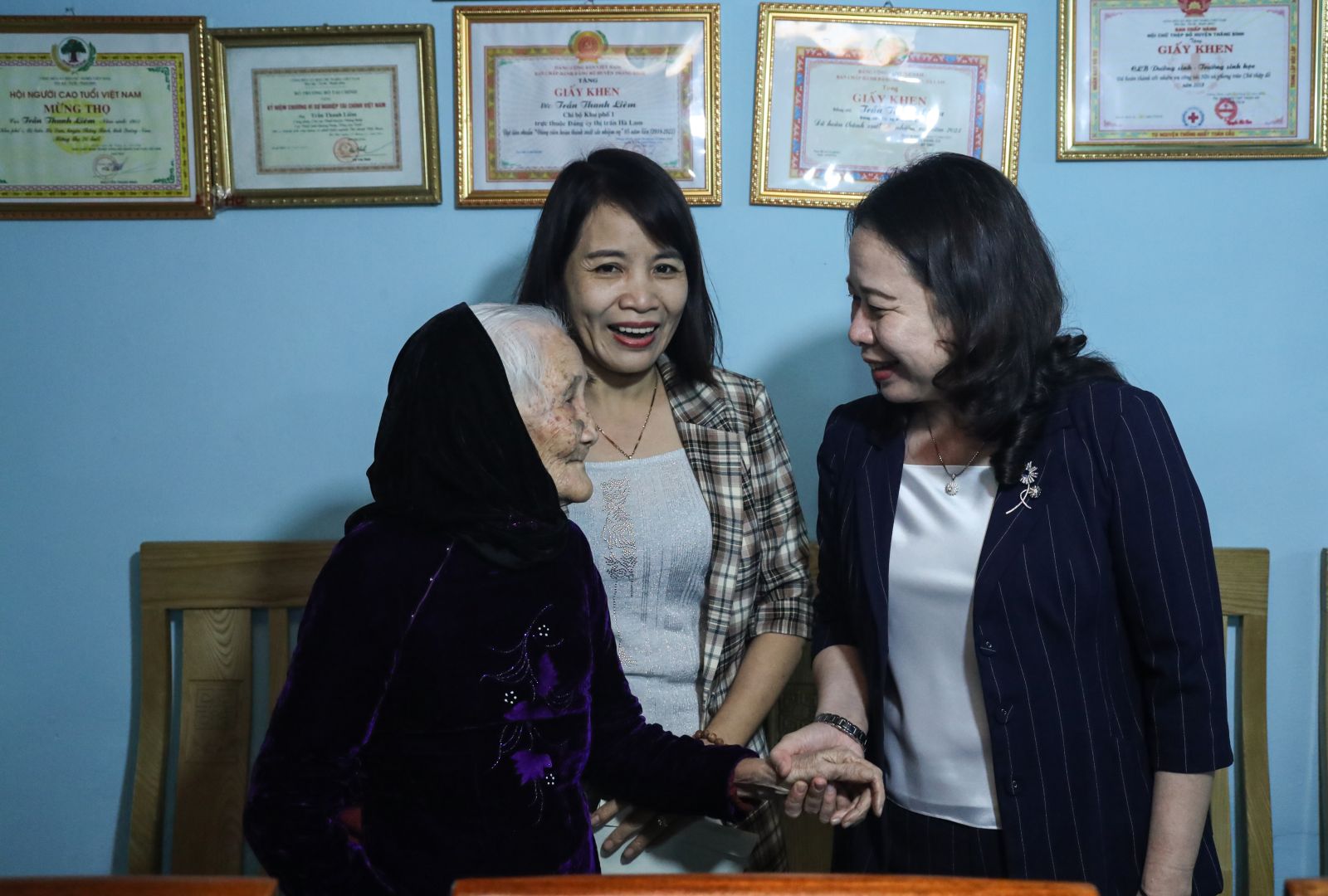 Phó Chủ tịch nước Võ Thị Ánh Xuân thăm, chúc Tết Mẹ Việt Nam Anh hùng Nguyễn Thị Tám. Ảnh: VPCTN
