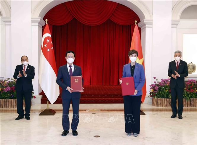 Trong không khí tin cậy, chân thành và cởi mở, hướng tới kỷ niệm 50 năm thiết lập quan hệ ngoại giao và 10 năm thiết lập quan hệ Đối tác chiến lược vào năm 2023, Chủ tịch nước Nguyễn Xuân Phúc và Thủ tướng Lý Hiển Long đã trao đổi và thống nhất cao về các phương hướng lớn cho quan hệ hợp tác hai nước trên tất cả các lĩnh vực. Hai bên nhất trí cần sớm khôi phục các chuyến thăm, tiếp xúc cấp cao và các cấp; thúc đẩy hợp tác an ninh quốc phòng; triển khai hiệu quả các cơ chế hợp tác song phương, nhất là cơ chế Bộ trưởng về Kết nối hai nền kinh tế; thúc đẩy thực hiện tốt các lĩnh vực hợp tác chủ chốt trong khuôn khổ Hiệp định Kết nối Kinh tế Việt Nam - Singapore (đầu tư, tài chính, công nghệ thông tin và truyền thông, giáo dục và đào tạo, giao thông, thương mại, dịch vụ). Hai nhà lãnh đạo cũng nhất trí mở rộng hợp tác trên các lĩnh vực đổi mới sáng tạo, chuyển đổi số, kinh tế số, phát triển xanh và bền vững, từ đó khuyến khích đưa kết nối hai nền kinh tế Việt Nam-Singapore hướng tới tầm cao mới là “kết nối hai nền kinh tế trên nền tảng số”; đồng thời góp phần thúc đẩy phát triển các khu VSIP theo hướng khu công nghệ cao, thông minh, thân thiện với môi trường; cũng như tận dụng hiệu quả các lợi ích từ các hiệp định thương mại tự do thế hệ mới hai nước cùng tham gia (CPTPP, RCEP...).