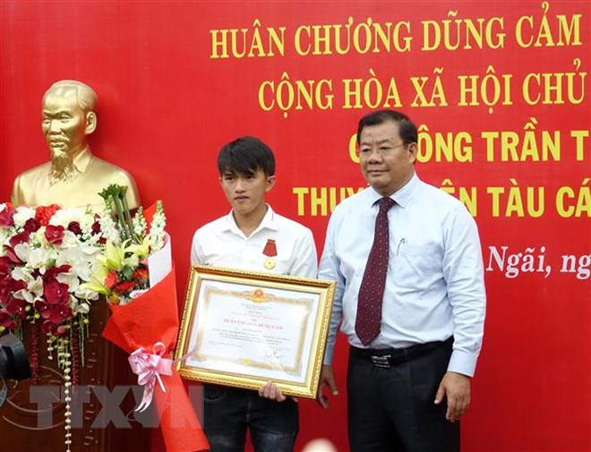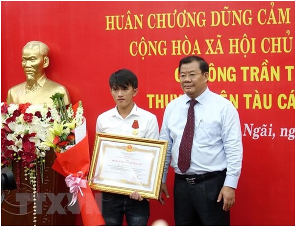 Ngày 21/11, thừa ủy quyền của Chủ tịch nước, Phó Chủ tịch Ủy ban Nhân dân tỉnh Quảng Ngãi Nguyễn Tăng Bính đã trao Huân chương dũng cảm tặng ngư dân Trần Thanh Ron (sinh năm 1993, trú xã Phổ Châu, huyện Đức Phổ, tỉnh Quảng Ngãi) vì hành động cứu người trên biển.