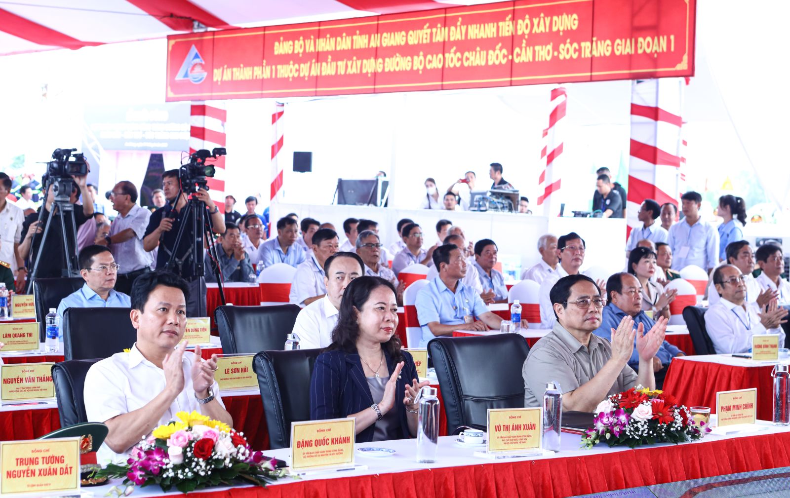 Theo Thủ tướng, để có đủ các điều kiện để khởi công dự án, các cấp các ngành, nhất là Bộ Giao thông vận tải và 4 địa phương có dự án đi qua đã phải thực hiện một khối lượng công việc rất lớn. Chỉ trong thời gian khoảng 1 năm so với mức trung bình 2 năm như cách triển khai thông thường, tỉnh An Giang và 3 tỉnh, thành phố Cần Thơ, Hậu Giang, Sóc Trăng cùng các Bộ, ngành, các đơn vị liên quan đã nỗ lực để khởi công đồng loạt 4 dự án thành phần với mục tiêu đến năm 2025 sẽ cơ bản hoàn thành và đưa vào khai thác đồng bộ toàn tuyến cao tốc trong năm 2026.